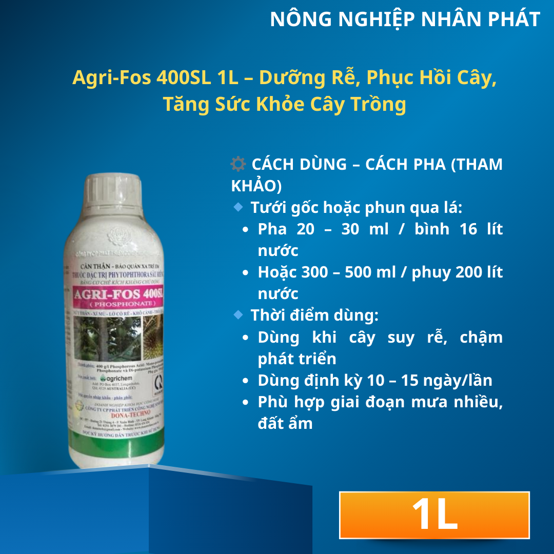 Đánh giá Agri-Fos 400SL 1L – Dưỡng Rễ, Phục Hồi Cây, Tăng Sức Khỏe Cây Trồng