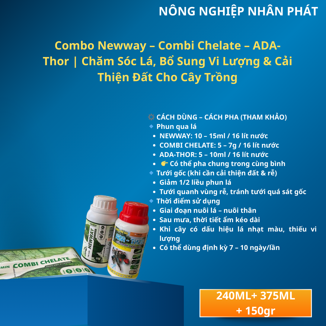Combo Newway – Combi Chelate – ADA-Thor | Chăm Sóc Lá, Bổ Sung Vi Lượng & Cải Thiện Đất Cho Cây Trồng